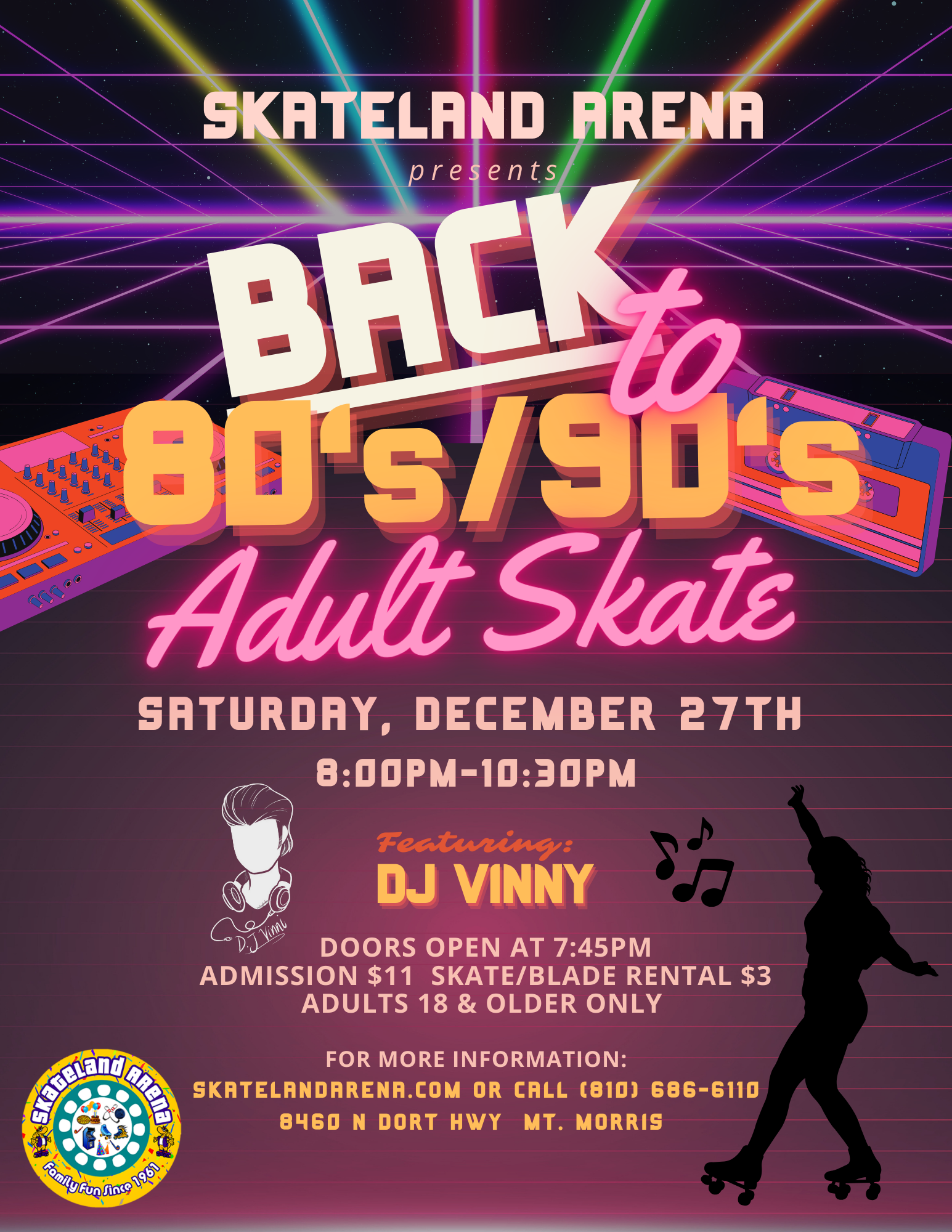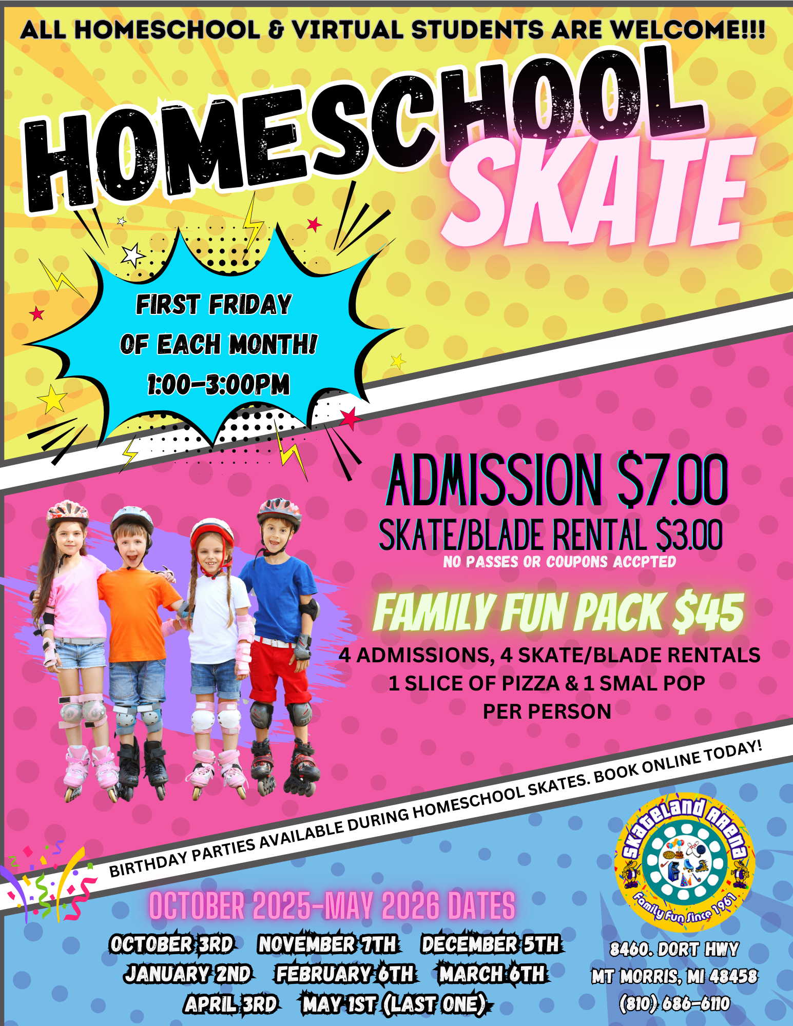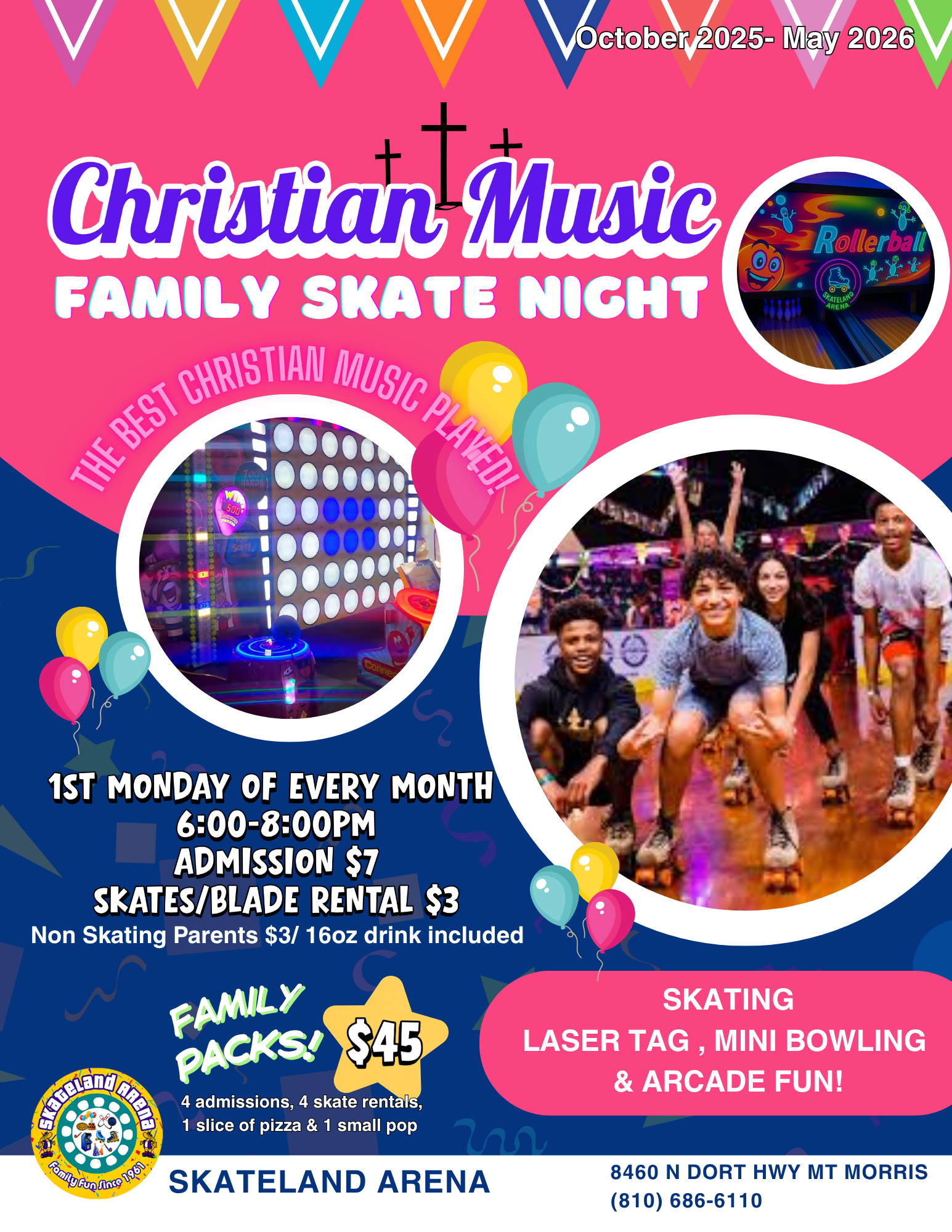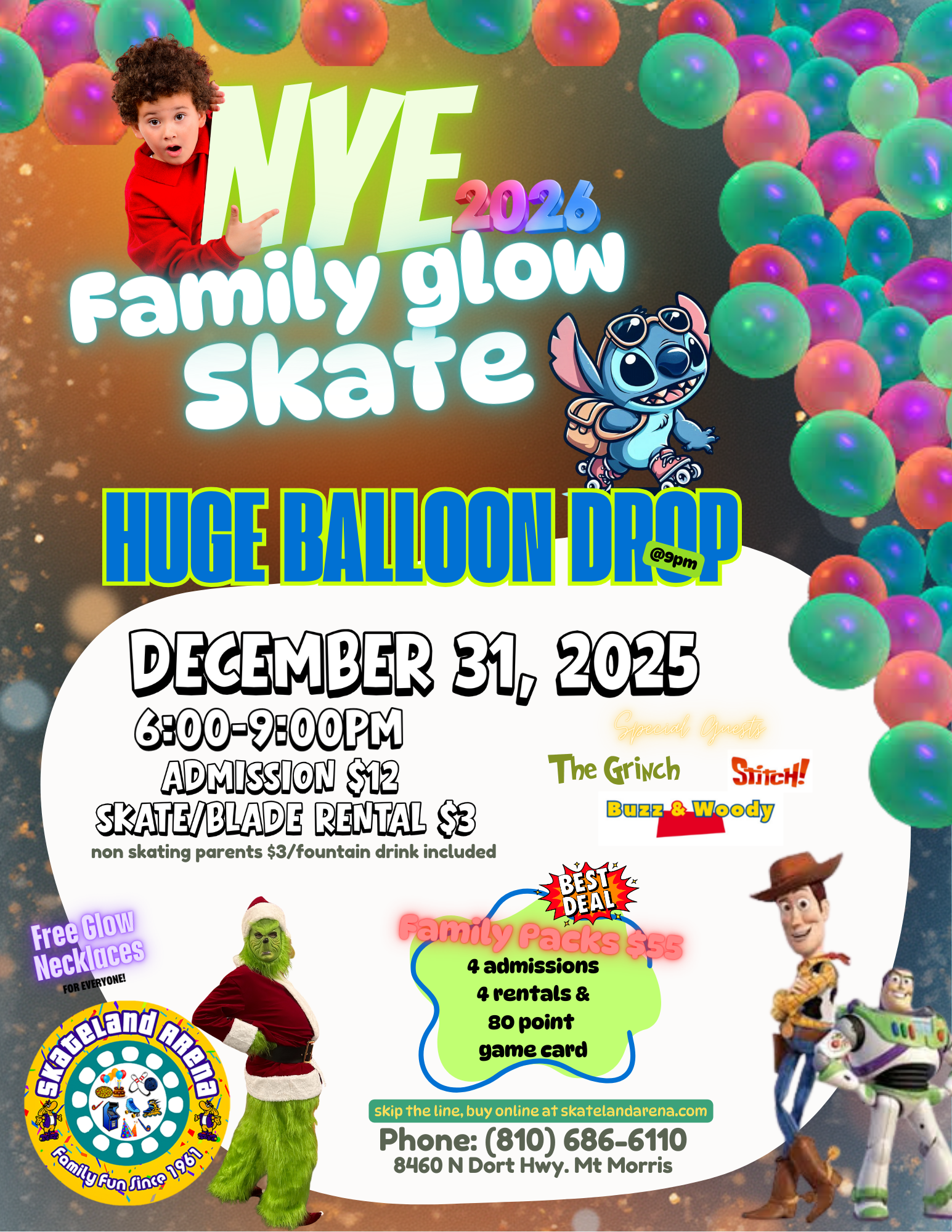 Skateland has been entertaining families in the Genesee County area since 1961. Family owned and operated for over 55 year we have become the place to be in Mt Morris. Laser Tag, Arcade, Roller Hockey Arena, Full Concessions, Volleyball Club and so much more.